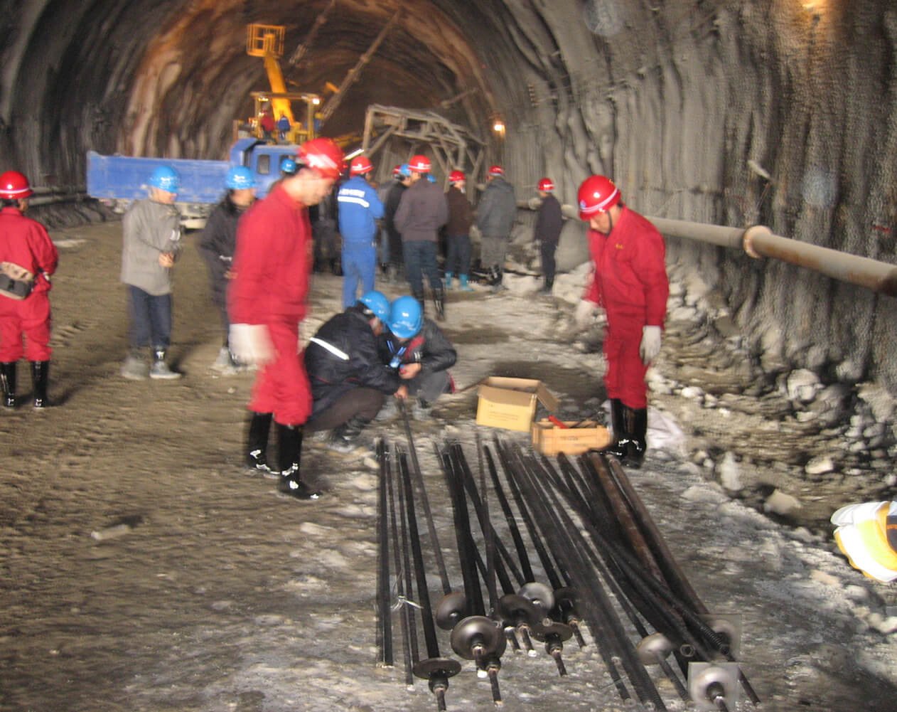 圖強(qiáng)低預(yù)應(yīng)力錨桿施工簡(jiǎn)單方便,在鄭萬高鐵的隧道工程應(yīng)用中優(yōu)化的鋼拱架設(shè)置;在錦屏二級(jí)水電站高埋深巖爆威脅起到了極大作用;在京張高鐵八達(dá)嶺大跨度車站多硐室地下車站支護(hù)中極大的保證了安全性;如今正在國家重點(diǎn)工程川藏鐵路做為復(fù)雜地質(zhì)條件隧道系統(tǒng)主動(dòng)支護(hù)發(fā)揮重大的作用。